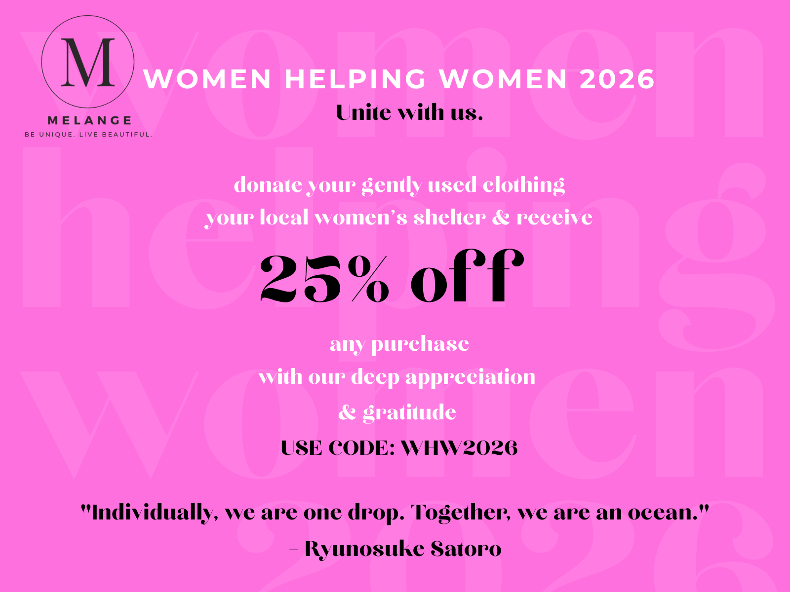 At Melange, we believe that clothing is not just about looking good, but also feeling confident and comfortable in your own skin. Our women's clothing collection is carefully selected to reflect the latest trends in women's fashion, while also emphasizing versatility and functionality. Whether you're dressing up for a special occasion, dressing down for a casual day out, or looking for the perfect outfit for an active lifestyle, Melange has something for everyone.